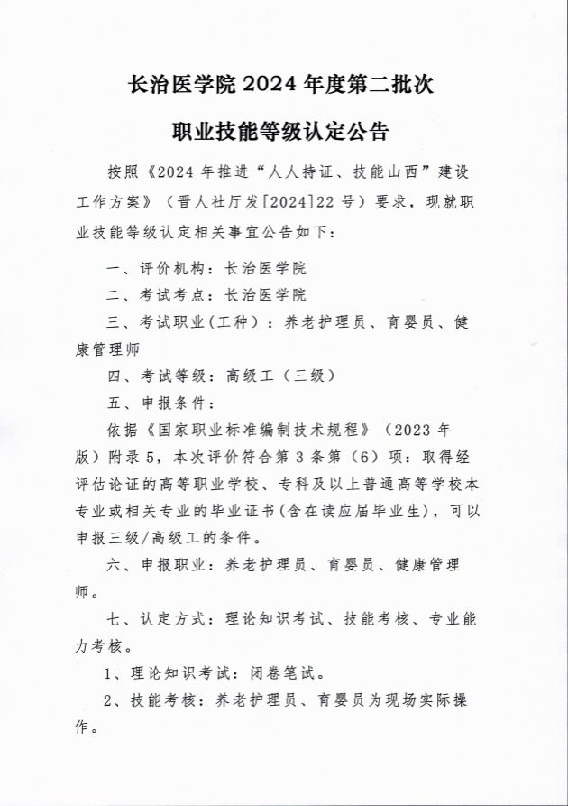 永利yl234112024年度第二批次职业技能等级认定公告